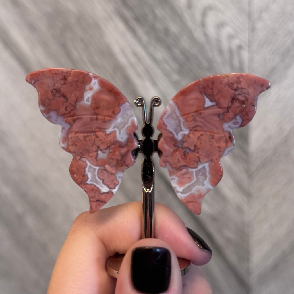 Pink Agate Crystal Butterfly