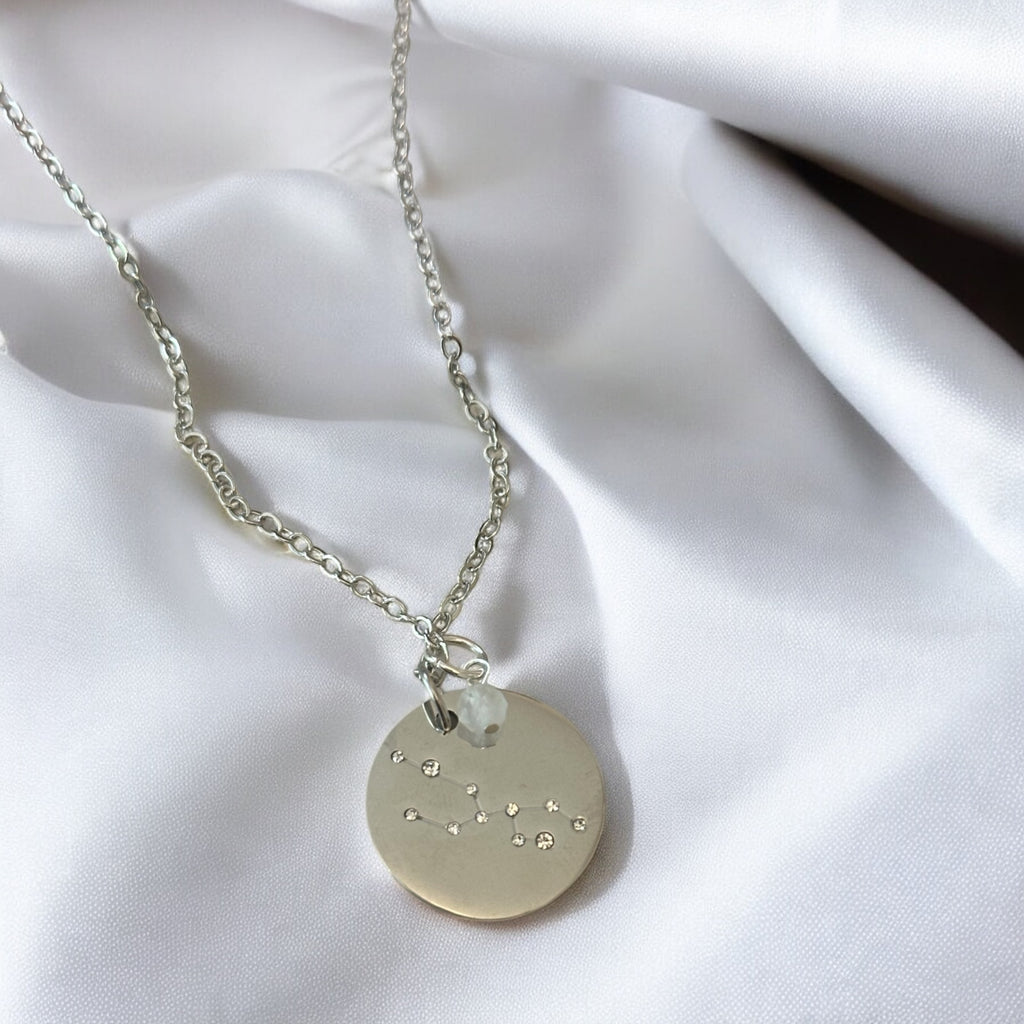Celestial elegance meets natural beauty in these Zodiac Constellation Necklaces with Gemstones. Thoughtfully designed with a hand-selected stone, it captures the wonder of the stars while adding a sophisticated, meaningful accent to any jewelry collection. Perfect for those who appreciate fine craftsmanship and symbolic style, this necklace offers a timeless connection to the cosmos.